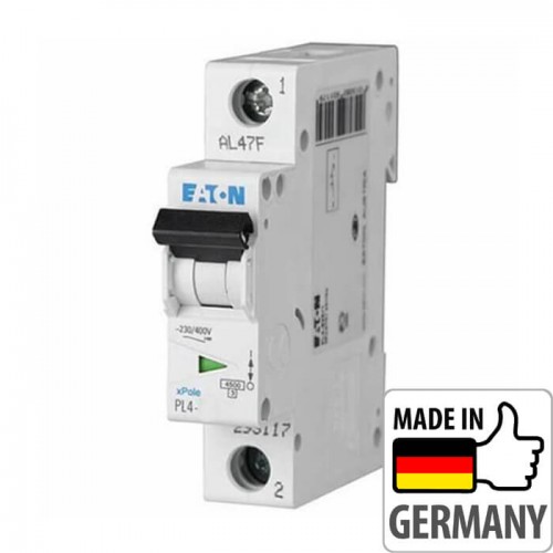 Автоматический выключатель EATON серии PL4 предназначен для защиты участков электрических цепей от токовой перегрузки и токов короткого замыкания. Простой и удобный монтаж на DIN-рейку, прямоугольный индикатор положения контактов (вкл./выкл.), возможность подключения дополнительных устройств. Индикация номинального тока автоматического выключателя - цветом управляющего рычага (у каждого номинала свой цвет). Автоматические выключатели серии PL4 позволяют подводить питание как сверху так снизу.