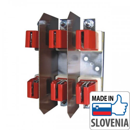 Наш интернет-магазин электротехники предлагает Вам купить 3-полюсный держатель ножевого предохранителя серии PK1/3 номинальным током 250А производства Словенского электротехнического концерна «ETI» со склада в Харькове. Словенский концерн «ETI» вот уже более 65 лет общепризнанный европейский лидер в производстве предохранительного оборудования. Держатель ножевого предохранителя PK1/3 предназначен для установки в него трех предохранителей типоразмера NH1 или NH1 C, которые Вы так же сможете найти в нашем интернет-магазине. Кабельное подключение к полюсу держателя – болтовое соединение М10. При производстве 3-полюсного держателя ножевого предохранителя PK1/3 используются только качественная керамика и легированная сталь. Гарантия на держатель ножевого предохранителя PK1/3 - 1 год. В нашем интернет-магазине электротехники «eco-system.com.ua» Вы сможете найти и приобрести большой ассортимент предохранителей и держателей к ним производства компании «ETI» и «APATOR» с официальной гарантией в Украине. Примечание: изолирующие красные крышки в комплект поставки не входят.