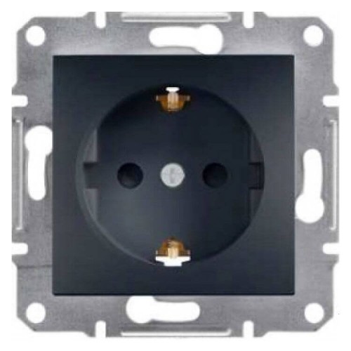 Розетка с заземлением и защитными шторками Schneider Electric серии Asfora 16А антрацит (EPH2900271)