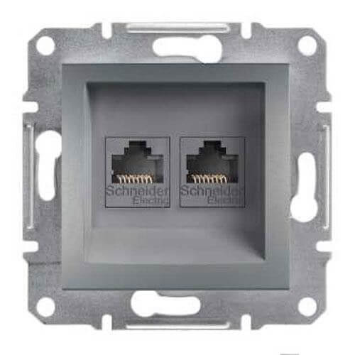 Характеристика розетки двойной телефонной RJ11 Asfora сталь (EPH4200162)