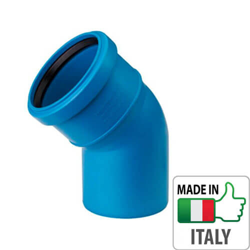 Наш интернет-магазин располагает широким выбором элементов бесшумной канализации и предлагает Вам купить монтажное колено (отвод) Valsir Triplus Ø125 на угол 45° со склада в Харькове.