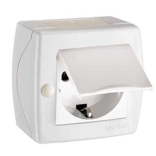 ⚡Розетка с крышкой и заземлением серии Octans (Mono Electric). Цвет Белый