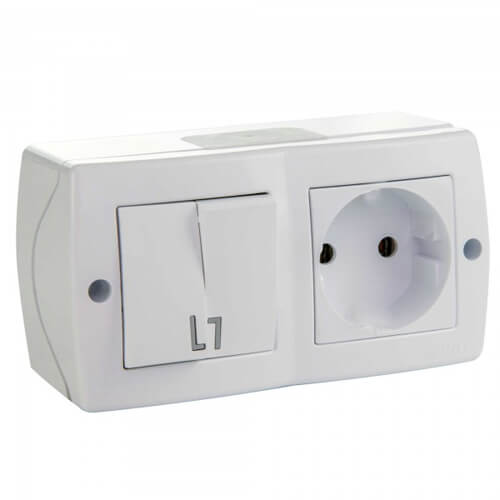 ⚡Выключатель двухклавишный + розетка без заземления серии Octans (Mono Electric). Цвет Белый