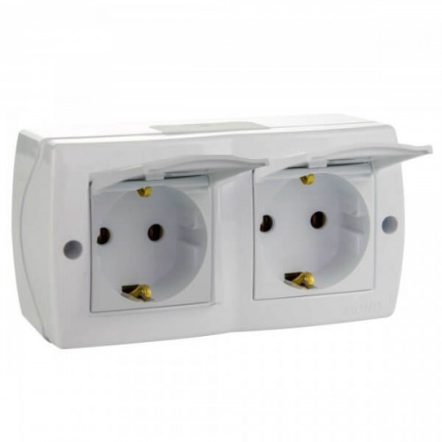 ⚡Розетка двойная с крышкой и заземлением серии Octans (Mono Electric). Цвет Белый