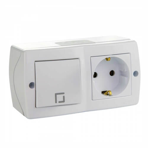⚡Выключатель одноклавишный + розетка с заземлением серии Octans (Mono Electric). Цвет Белый