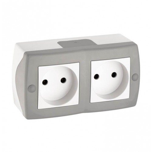 ⚡Розетка двойная без заземления серии Octans (Mono Electric). Цвет Серый