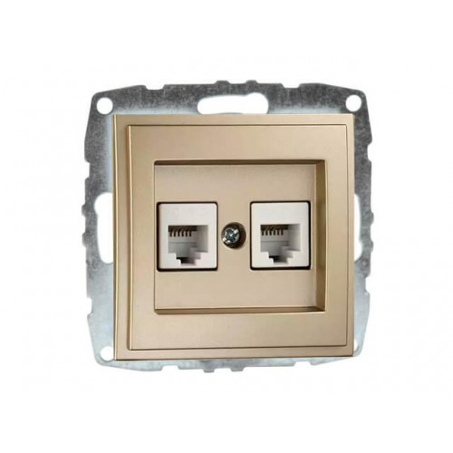 Механизм двойной телефонной розетки цифровой (RJ11 CAT3A) серии Despina (Mono Electric) Кремовая с панелью