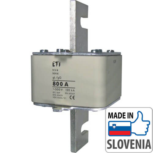 Наш интернет-магазин электротехники предлагает Вам купить ножевой предохранитель NH4 на 900А с характеристикой срабатывания gL/gG для защиты линейных цепей от короткого замыкания и перегрузки производства Словенского электротехнического концерна «ETI» со склада в Харькове. Словенский концерн «ETI» вот уже более 65 лет общепризнанный европейский лидер в производстве предохранительного оборудования. Ножевой предохранитель NH4 на 900А с характеристикой срабатывания gL/gG предназначен для установки в держатели PK4 производства «ETI», которые Вы так же сможете найти в нашем интернет-магазине. В конструкции ножевого предохранителя NH4 на 900А отсутствует индикатор срабатывания. Гарантия на предохранители NH4 - 1 год. В нашем интернет-магазине электротехники «eco-system.com.ua» Вы сможете найти и приобрести большой ассортимент предохранителей и держателей к ним производства компании «ETI» и «APATOR» с официальной гарантией в Украине.
