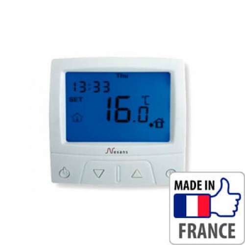 Программируемый терморегулятор для установки в монтажную коробку внутри помещения. Регулятор от компании Nexans, который обладает огромным удобным цифровым дисплеем. Предназначен для управления системами теплых полов.