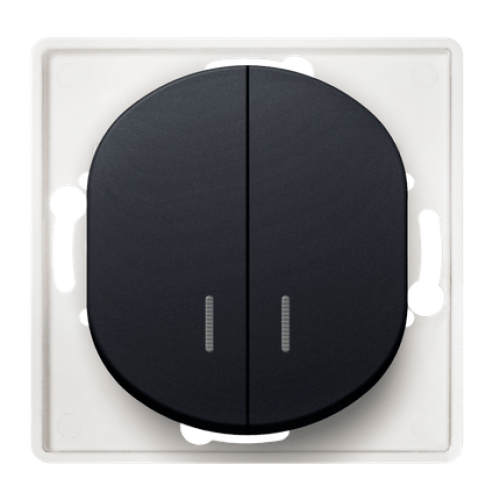 Вимикач подвійний з індикатором Aling Conel серії EON чорний (E626.E1)