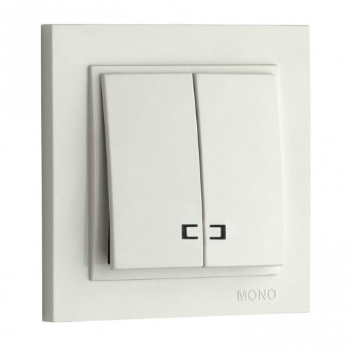 Вимикач двоклавішний з підсвічуванням 10А серії Despina (Mono Electric) Білий