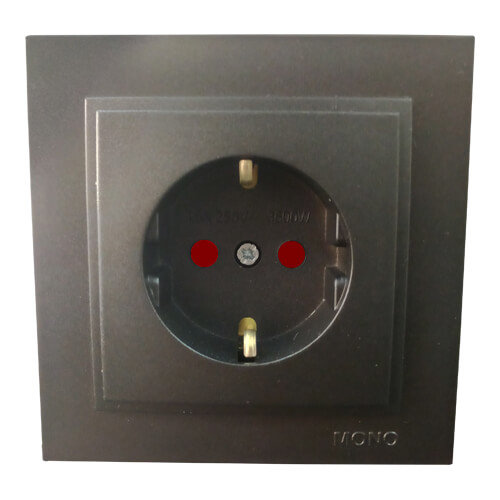Розетка з заземленням та захисними шторками серії Despina (Mono Electric). Колір Графіт