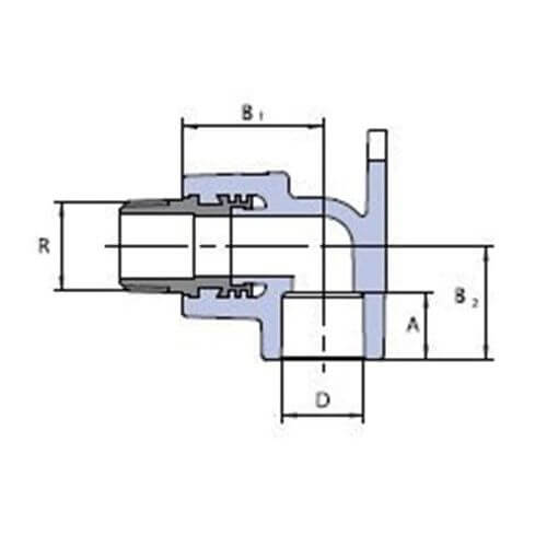 - Размеры: D=20мм, R=1/2”, B1=47,5мм, B2=27,0мм, A=14,5мм