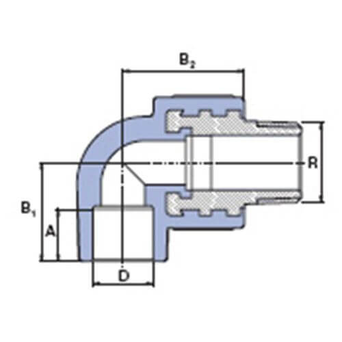 PP-R Угольник 90º с металлической наружной резьбой 1/2”x16мм, Wavin Ekoplastik