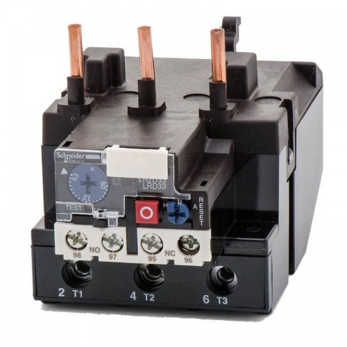 Тепловое реле используется для защиты асинхронного электродвигателя от перегрузки. Реле устанавливается под контактором и в случае превышения номинально заданного тока подает на контактор сигнал отключения. Благодаря встроенной функции ручного и автоматического сброса и простой установке при помощи клемм с винтовым контактным зажимом, пружинных контактов, кольцевого зажима и клеммного блока EverLink, тепловые реле перегрузки модели LRD очень надежны и охватывают целый спектр типоразмеров двигателя вплоть до 150 A. Использование тепловых реле перегрузки в сочетании с контакторами TeSys D образует чрезвычайно компактный пускатель. Класс отключения 10А, возможна поставка с классом отключения 20.