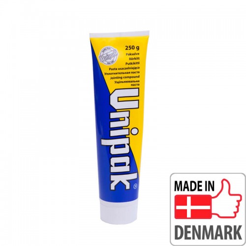 Паста «UNIPAK» применяется вместе с льняными волокнами или уплотняющим льняным шнуром для уплотнения резьбовых соединений в трубопроводных системах для горячей и холодной воды, а также пара под низким давлением. Паста обеспечивает абсолютную герметичность соединения, а также, (в отличие, например, от ФУМ ленты) большую гибкость при регулировке трубных соединений. Угол возможной юстировки соединения не менее 45° без потери герметичности. Применение пасты «UNIPAK» позволяет в будущем легко демонтировать резьбовые элементы оборудования.