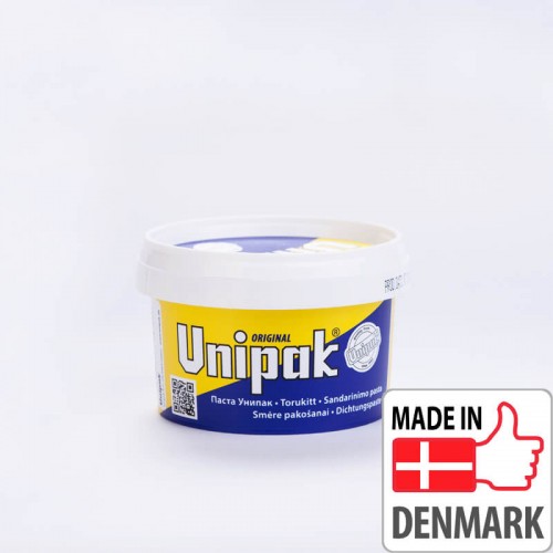 Паста «UNIPAK» применяется вместе с льняными волокнами или уплотняющим льняным шнуром для уплотнения резьбовых соединений в трубопроводных системах для горячей и холодной воды, а также пара под низким давлением. Паста обеспечивает абсолютную герметичность соединения, а также, (в отличие, например, от ФУМ ленты) большую гибкость при регулировке трубных соединений. Угол возможной юстировки соединения не менее 45° без потери герметичности. Применение пасты «UNIPAK» позволяет в будущем легко демонтировать резьбовые элементы оборудования.